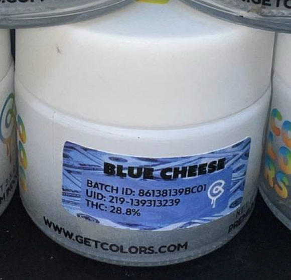 Each jar contains 3.5 grams (⅛ ounce) of top-shelf Blue Cheese flower.